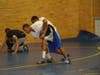In a cramped school gym, a couple of dozen sweaty high school boys are grunting, running, bleeding and smiling. The "new and improved" wrestling team is hard at work under second year head coach Keil Jorgensen.