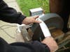 This Dearborn Farmer's Market vendor keeps visitors' knives razor-edged with old-fashioned sharpening.