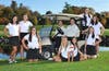 Photos: In the first photo are members of the team (from left) Molly Morey, Jessica Wensley, and Grace Fiscelli; (seated in golf cart) Coaches Kevin Barkoff and Howard Inch; (on ground) captains Elayna Bowser and Madison Renko; and Casandra Fisher, (kneeling) Brenna Shelton, and Caroline Marcon.