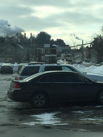 Thick black smoke was billowing from AK Steel, previously Severstal Dearborn. (Twitter photo via @RashidaTlaib)