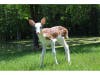 Dragon, a rare piebald fawn, was rejected by his mother, but soon may romp with the other deer at Michigan farm. (Deer Tracks Junction photos used with permission.)