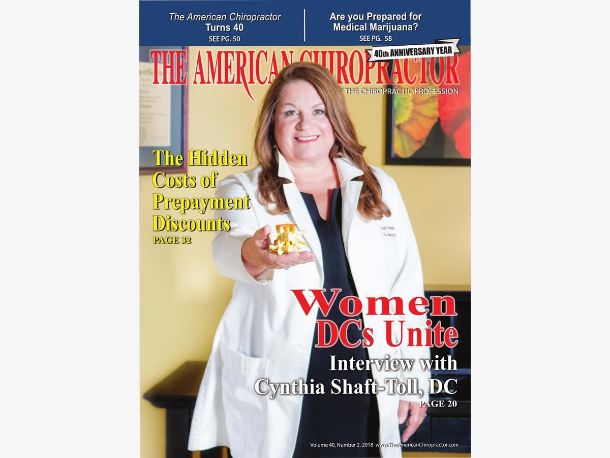 Dr. Cyndy Shaft-Toll is on the cover of the American Chiropractor and founder of the non-profit organization Women Chiropractors.