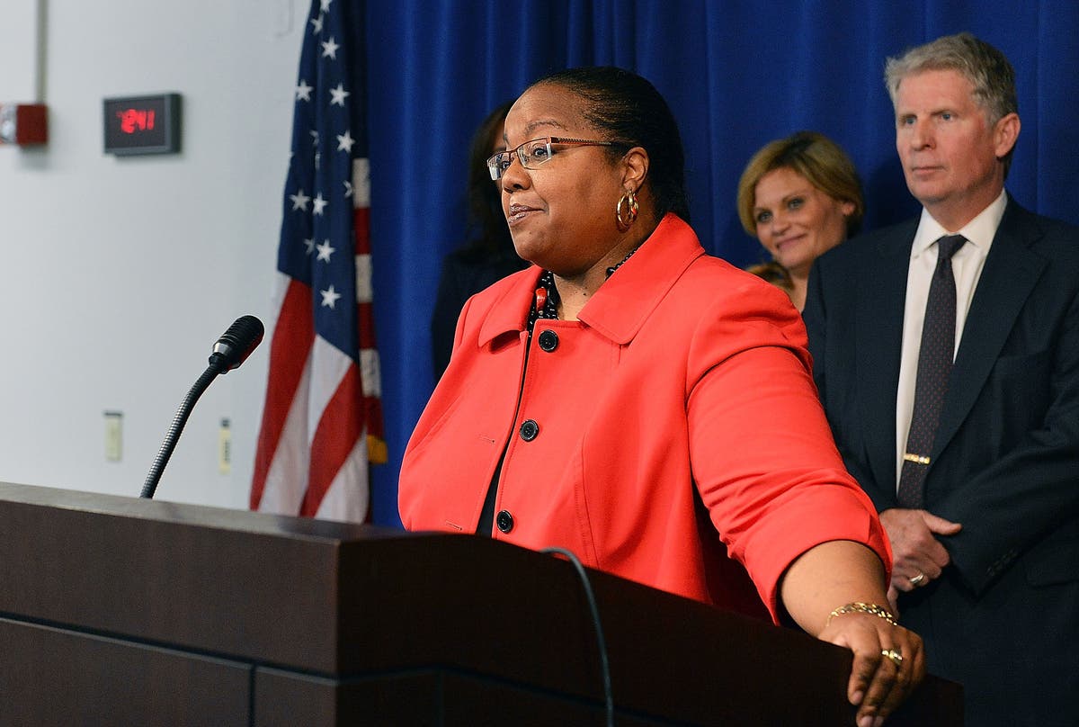 Wayne County (Detroit) Prosecutor Kym L. Worthy attends Joyful Heart Foundation's special announcement about up to $35 Million in funding to help eliminate rape kit backlog in cities nationalwide, at Manhattan District Attorney's Office on November 12, 2014 in New York City. (Photo by Slaven Vlasic/Getty Images Entertainment/Getty Images)