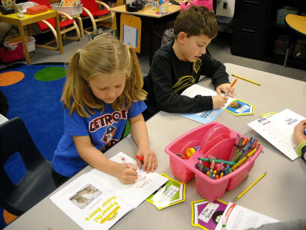 Becky Cudini's kindergarten class worked together to pick out brand new books from Scholastic's online book ordering system, using classroom bonus points. Cudini’s class collected a large number of bonus points throughout the year and each of her students was able to sign a special book that will go to one of the many children affected by the storm.