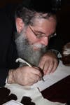 "We could literally see him write the first letter of the Torah," Rube said, adding there are 305,000 letters in the scroll, all written by hand. Pincus and other sofers worked on smaller sheets that were sewn together.