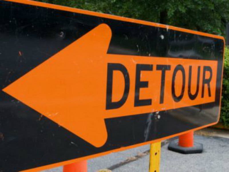 The detour takes westbound traffic to the Lodge Freeway. MDOT suggests taking Lodge south to Telegraph to west Eight Mile Road to west M-5 to west I-96.