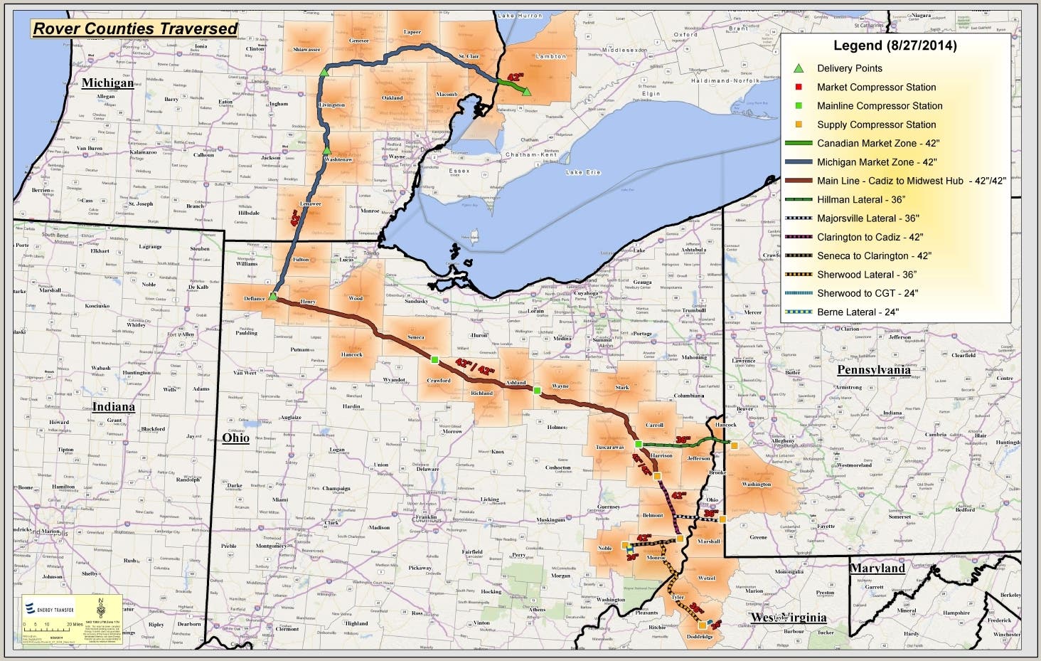This map shows the proposed route of Texas-based Energy Transfer’s proposed ET Rover natural gas pipeline. (Photo: Energy Transfer)