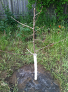 Keeping them alive may be more difficult than I thought for these apple trees, and also for the peach and plum trees that I ordered from Stark Nursery in Georgia. The bugs are feasting on them. Honey Crisp wrote to Grandpa Matt and he offered her this advice