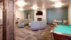 The 16 student apartments are either two- or four-person suites, housing 48. There is one apartment for a live-in residence coordinator. The common areas include lounges, a study area, and an entertainment area with billiards, pingpong and a fireplace.