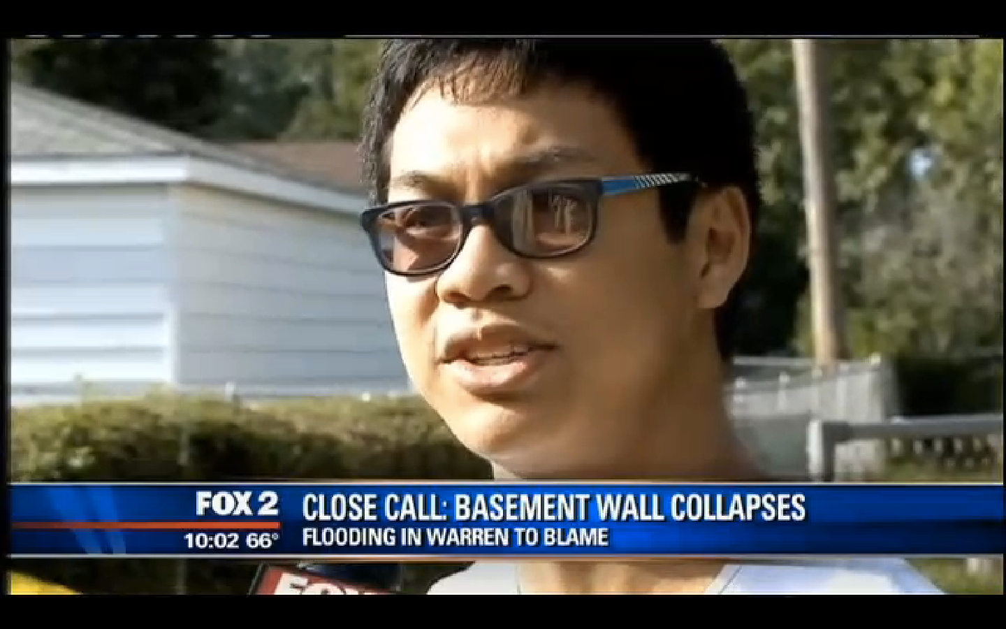 Josh Solmayor is counting his blessings after the foundation of his family’s home collapsed, nearly crushing him. “As long as I’m fine and my family’s fine, materials are replaceable,” he said. (Screenshot: WJBK video)