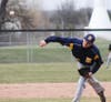 In softball, Hartland's Abbie Minkser pitched a strong game for the Eagles on a windy day that felt more like a late fall afternoon.