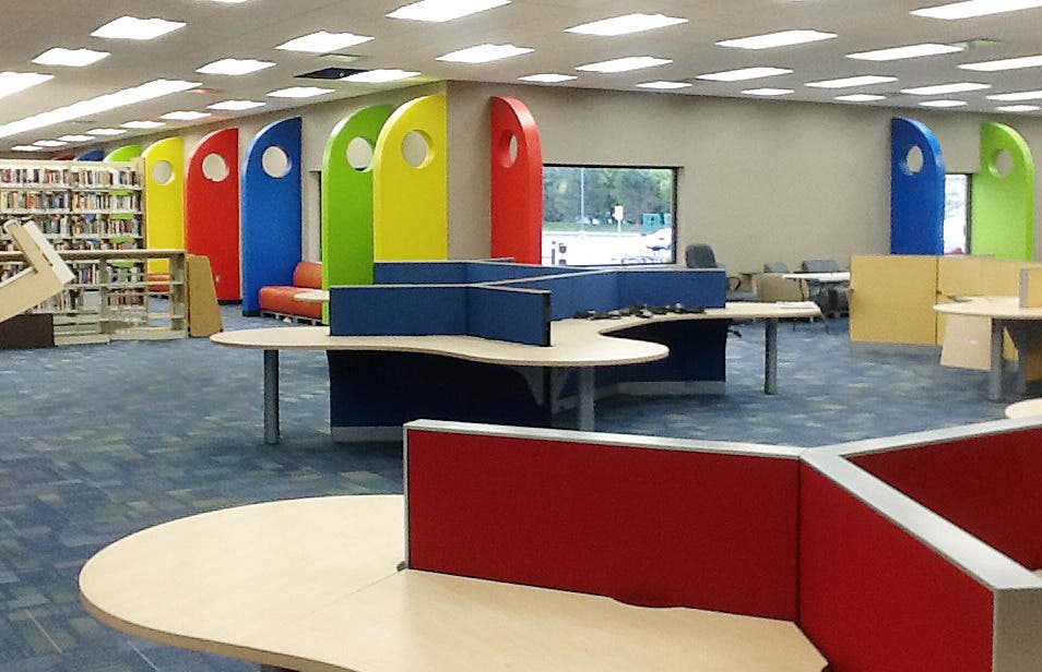 · Flexible spaces that have new movable furniture, walls painted in whiteboard paint, mobile whiteboards, ample charging ports, carrel desks and laptop chairs