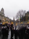 Although it rained for the entire two and a half hours of the parade, Duby said, "the band was loving that they actually could ring water out of thier gloves at the end, and at times were marking time in ankle deep puddles."