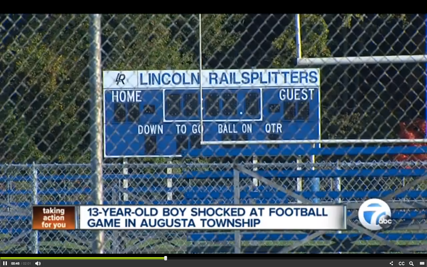 The 13-year-old student was shocked in the football stands in a middle school football game at Lincoln High School in Augusta Township on Tuesday afternoon, WXYZ, Channel 7, reports. The student’s current condition is unknown.