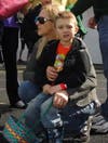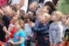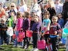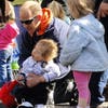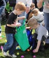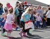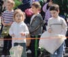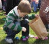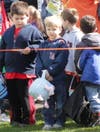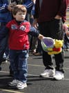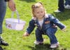 Eyes were glued to the sky as the helicopter emptied bags brimming with eggs onto the field below. Once the all-clear was given, the first wave of children was sent charging onto the field to collect their 10 eggs each.