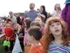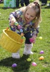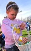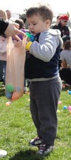 Carrying Easter baskets of every shape, size and color, thousands of children and their parents lined the football field to await the helicopter that would shower hundreds of eggs onto the already egg-laden field.