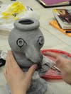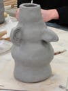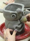 LCHS pottery students were given some requirements to guide their project, but were free to use the extent of their imaginations to model the "faces" on their jugs.