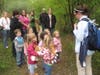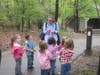 Seasonal Naturalist Lauren Kunysz led the small group of students through the woods and across a gravely path to see what spring sights they could find. Their first stop: a look at giant ant mounds. Then, they stopped to observe green moss and a squirrel nest in a tree.