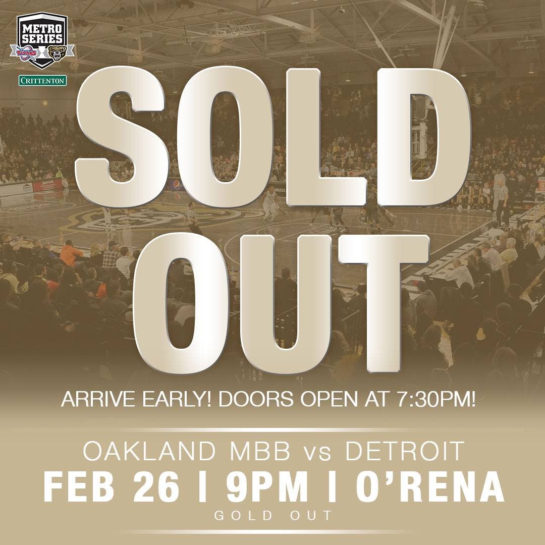 Oakland University's game versus Detroit Mercy this weekend was sold out.