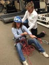 This patient has a very physically demanding job as a restoration mason. She scales walls on a tether, carries 50 lbs. buckets, holds a 35 lbs. caulk gun, pulls heavy cables with one hand while supporting her body with the other! Yes, we can help with this too!