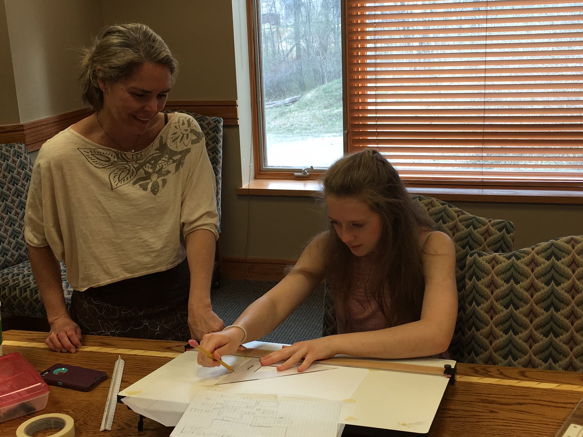 Photo caption: 8th grader Jency Brock works on interior design with mentor Camille Rodda