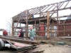 With the four bents in place, the roof frame was next. Workers soon discovered, however, several beams had to be refitted. A setback such as this threatened to delay the project and left the barn team wondering if they could complete their task in a day.