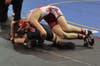 Rochester junior Kaelan Richards had a hard time grabbing hold of Pantaleo in their semifinals match (135 pound)