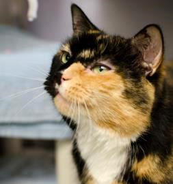 Cleo was brought in as a stray. This beautiful, 4-year-old, calico cat had a microchip that came from Washington D.C. but the chip had never been activated. There must be a story to her past but sadly we do not know what brought her to Michigan and then to our shelter at the Humane Society of Huron Valley.
