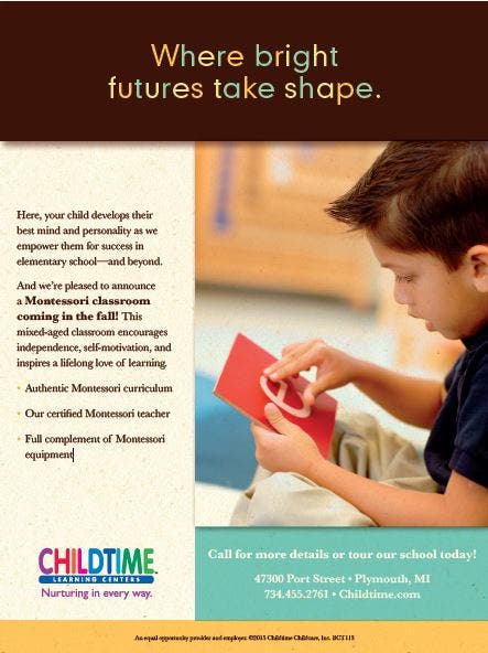 At Childtime in Plymouth, your child develops their best mind and personality as they empower them for success in elementary school—and beyond. And this fall, a new Montessori classroom will be opening! This mixed-aged classroom encourages independence, self-motivation, and inspires a lifelong love of learning. It will provide an authentic Montessori curriculum with a certified Montessori teacher as well as a full complement of Montessori equipment.