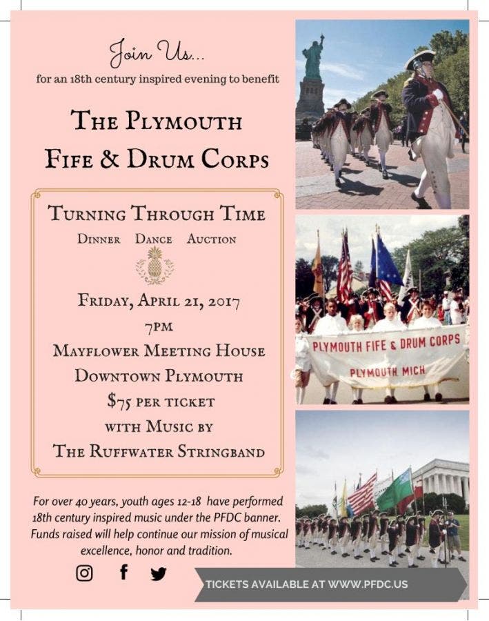 Turning through Time, an 18th century dinner, dance and silent auction to benefit the Plymouth Fife and Drum Corps.