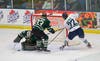 Plymouth outshot London, 9-6, in the third period and finally broke through on the power play at 12:08 of the third period on Dunda’s shot through traffic just outside the London blue ice.