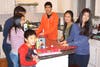 Photo 1: Joy Maker Challenge Volunteers are wrapping the toys (from left: Paul Shen, Claire Wan, Eric Wan, Alan Sun, Stacey Zeng, Anna Sun)