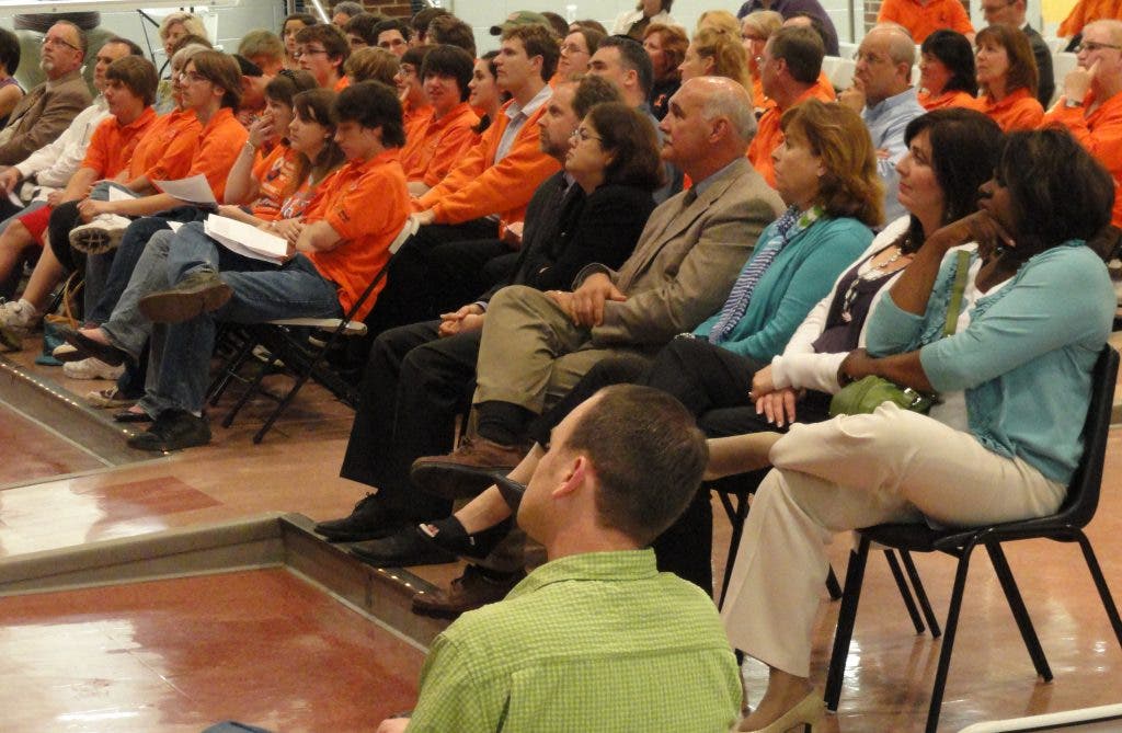 Dozens of people at Tuesday's Plymouth-Canton school board meeting wore orange to show support for the program.