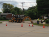 According to Consumers, at least one home has been evacuated after workers hit a gas line around 1:30 p.m., releasing gas into nearby sewers.