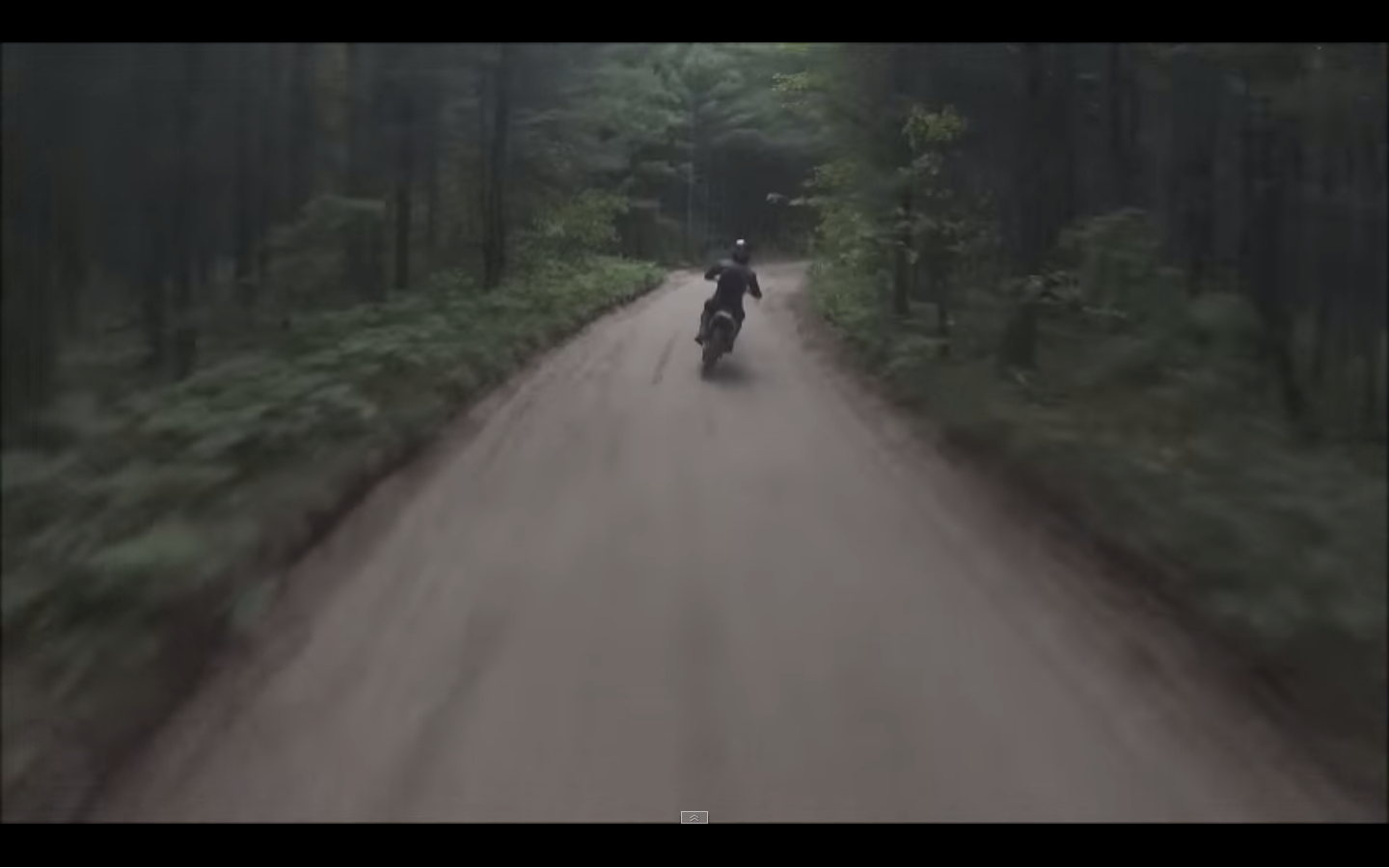 Out for adventure along tree-lined dirt road in Michigan, dirt biker has a surprise encounter – an his buddy catches it all on video.