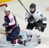 Henderson got a goal back for Plymouth in the third period, ripping a shot from the hasmarks, top shelf. But that was as close as Plymouth got. Vellucci pulled Bowman for the extra attacker with over two minutes left, but Povorozniouk completed the scoring with his empty-net marker.