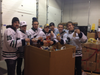 Carter Sandlak, Victor Crus Rydberg, Matt Mistele, Mitch Jones, Nick Malysa, Zach Lorentz and Danny Vanderwiel - along with staff member George Defenthaler - unloaded boxes of food in a three-hour shift of Whalers Sweat Equity that will help feed the hungry during the upcoming holidays.