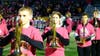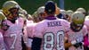 The players, coaches, cheerleaders and bands were all wearing pink to support the New Day Foundation for Families. The Rochester-based foundation supports families and children who have lost a parent to cancer.