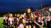 The schools were able to put the crosstown rivalry aside for a greater cause, as seen with the cheer squads and bands performing together before the game for an epic collaboration that nearly overtook the entire football field.