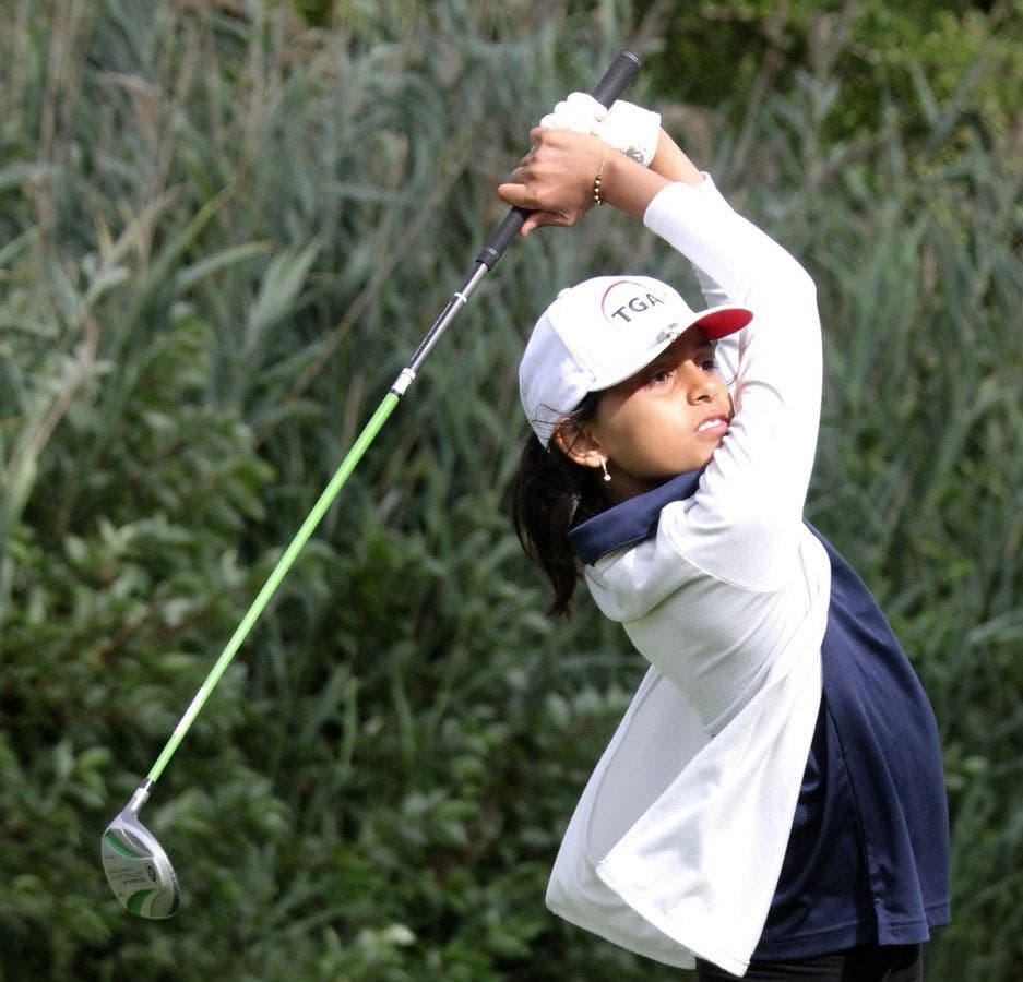 Ria Narang takes a swing during the TGA Junior Golf Invitational
