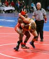 9:40 p.m. – Rochester’s Josh Wood is headed back to the finals in the Division 1 112-pound weight class. The sophomore beat Doug Zundel of Roseville in the semifinals on Friday night 6-3.