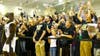 Spirits are high and excitement is in the air while the big screen shows a replay of Oakland's win against Oral Roberts — the win that clinched a berth in the 'big dance."