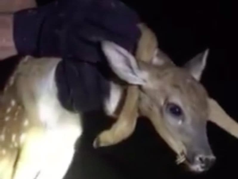 The poor fawn’s plaintive bleating — police described the distress calls as “howling” — will stab at your heart. And poor Mama was “frantically running around trying to help her baby,” according to the Facebook post.