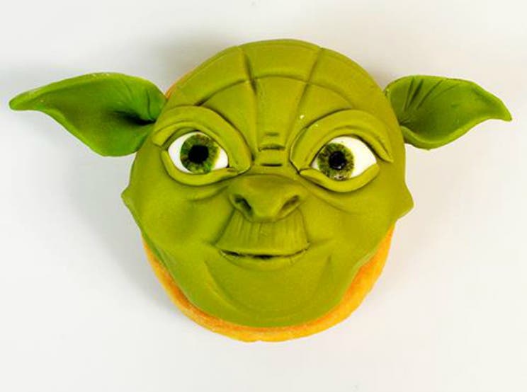 Doughnut designers arrived at the bakery at 4 a.m. Friday to begin creating the, ahem, forceful designs featuring Yoda, Chewbacca, Darth Vader, Princess Leia, C-3PO, R2-D2, and a Storm Trooper and a pair of light sabers.