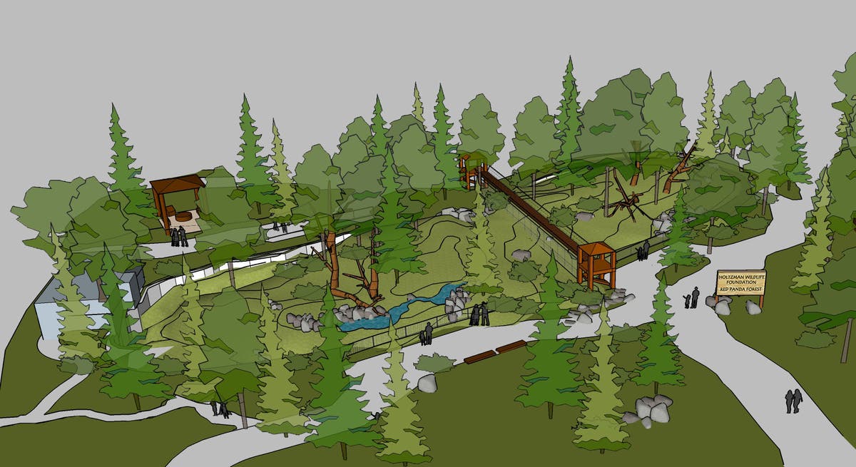 The new, larger display will feature a flowing stream, a larger and more complex arboreal pathway through the habitat, misting areas to cool the red pandas in the summer, additional land for exploration and a variety of new nesting places. There also will be a new indoor holding area with heated and cooled areas equipped with nest boxes, branches and other features to ensure the red pandas’ health and welfare during the occasional times they are not in the outdoor habitat.