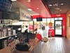 The interior of the new Domino's—with its bright red paint, hardwood floors and giant chalkboard—is very trendy. There is even an iPad for walk-in customers to place their orders.