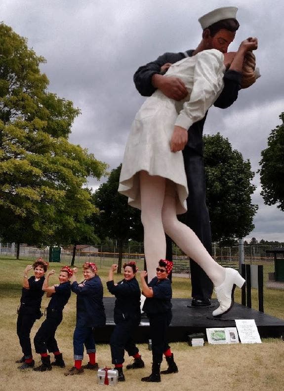 The sculpture has provided a dramatic backdrop for the Woodward Dream Cruise, the Royal Oak Outdoor Art Fair, Paws in the Park and a celebration of the 71st anniversary of VJ Day and the end of the war. Most recently, Michigan residents gathered for a candle light ceremony marking the 75th anniversary of the attack on Pearl Harbor. This is of course in addition to the likely thousands of photographs taken by visitors from across the state. With a few weeks to go before it leaves, it’s not too late for anyone who has not yet taken their picture with this memorable image to do so.