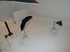 The mammoth garage door has been downscaled for the huge white space with lights and cameras for film production and photo work.