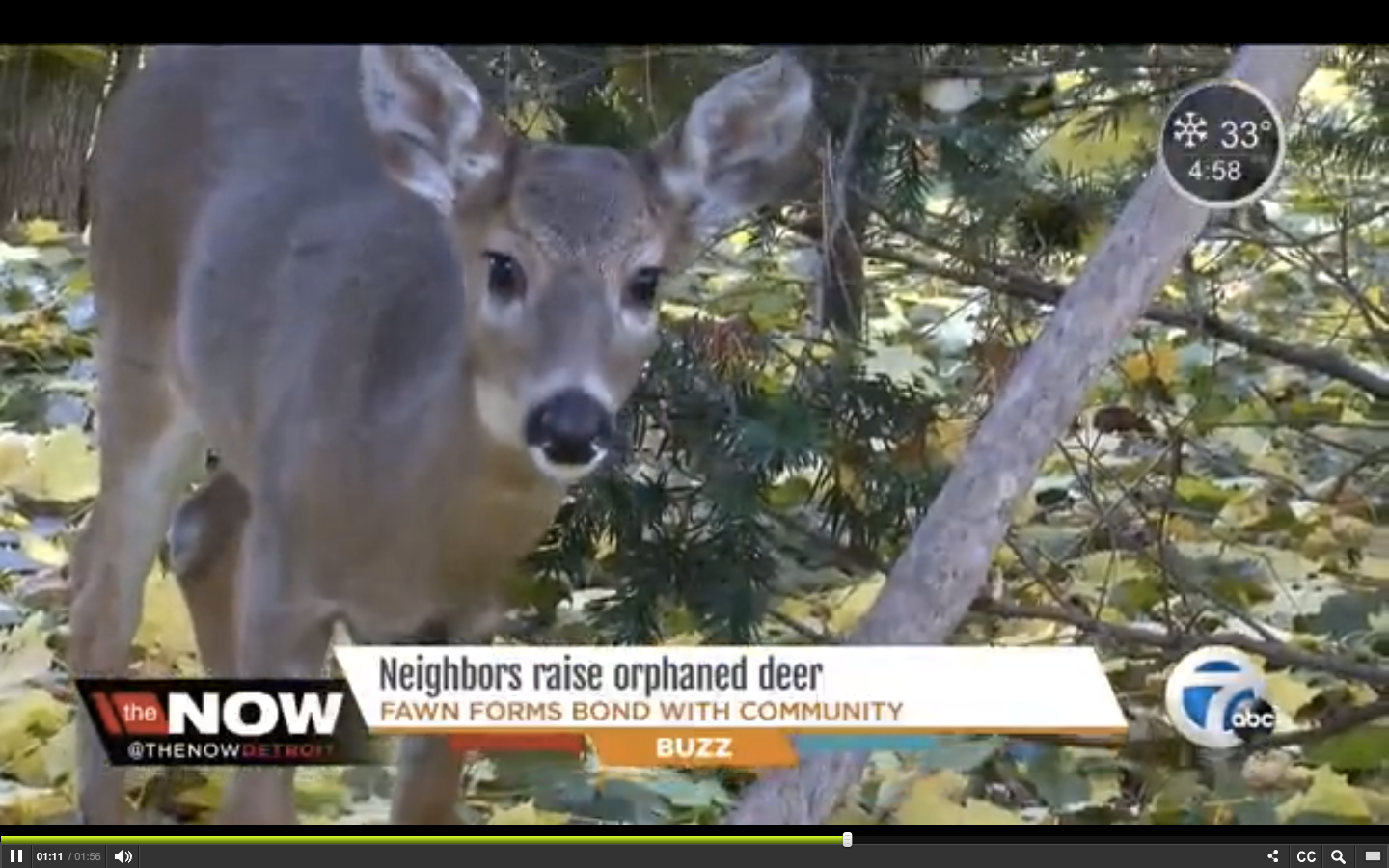 Baby is a white-tail deer fawn, likely born in June and orphaned a few weeks after when her mother was hit in traffic, WXYZ-TV, Channel 7, reports.