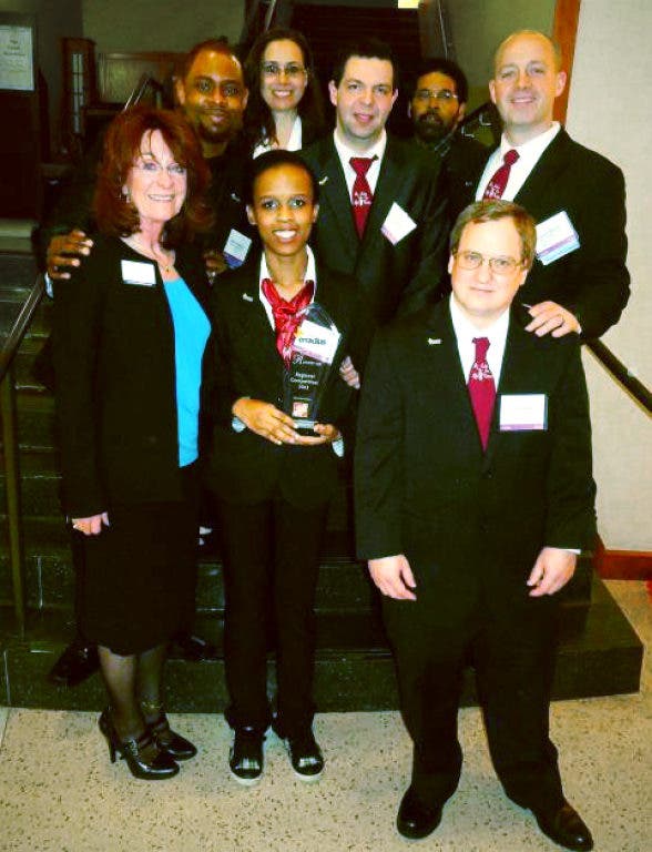 Baker College of Flint Enactus team members are business students Adam Gaffka, Ardelia Bailey, and Jamie Giampa of Flint; DaRon Hairston and Joe Basor, Grand Blanc; Deryl Lee, Burton; Thomas Greer, Kingston; and Shandra Luchenbill, Auburn Hills.